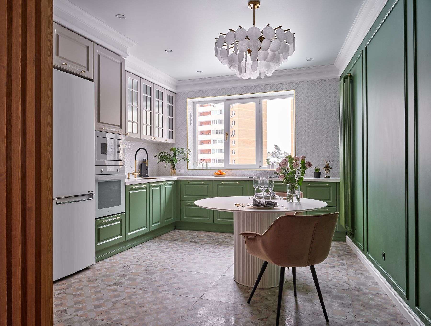 Эргономичность. Главное, чтобы на кухне было удобно готовить. Расстояние между основными функциональными зонами должно быть примерно равным и относительно небольшим, на пути не должны вставать дополнительные элементы (например, остров или полуостров). Организовать все это в большой кухне сложнее, чем в маленькой.