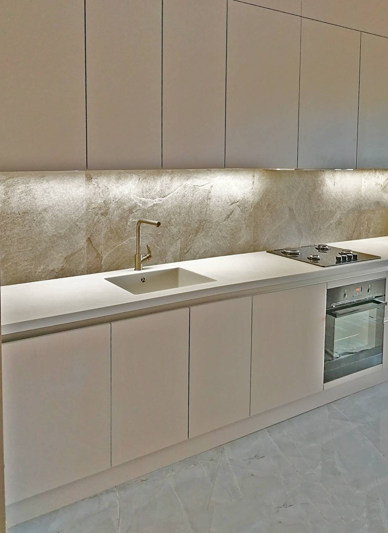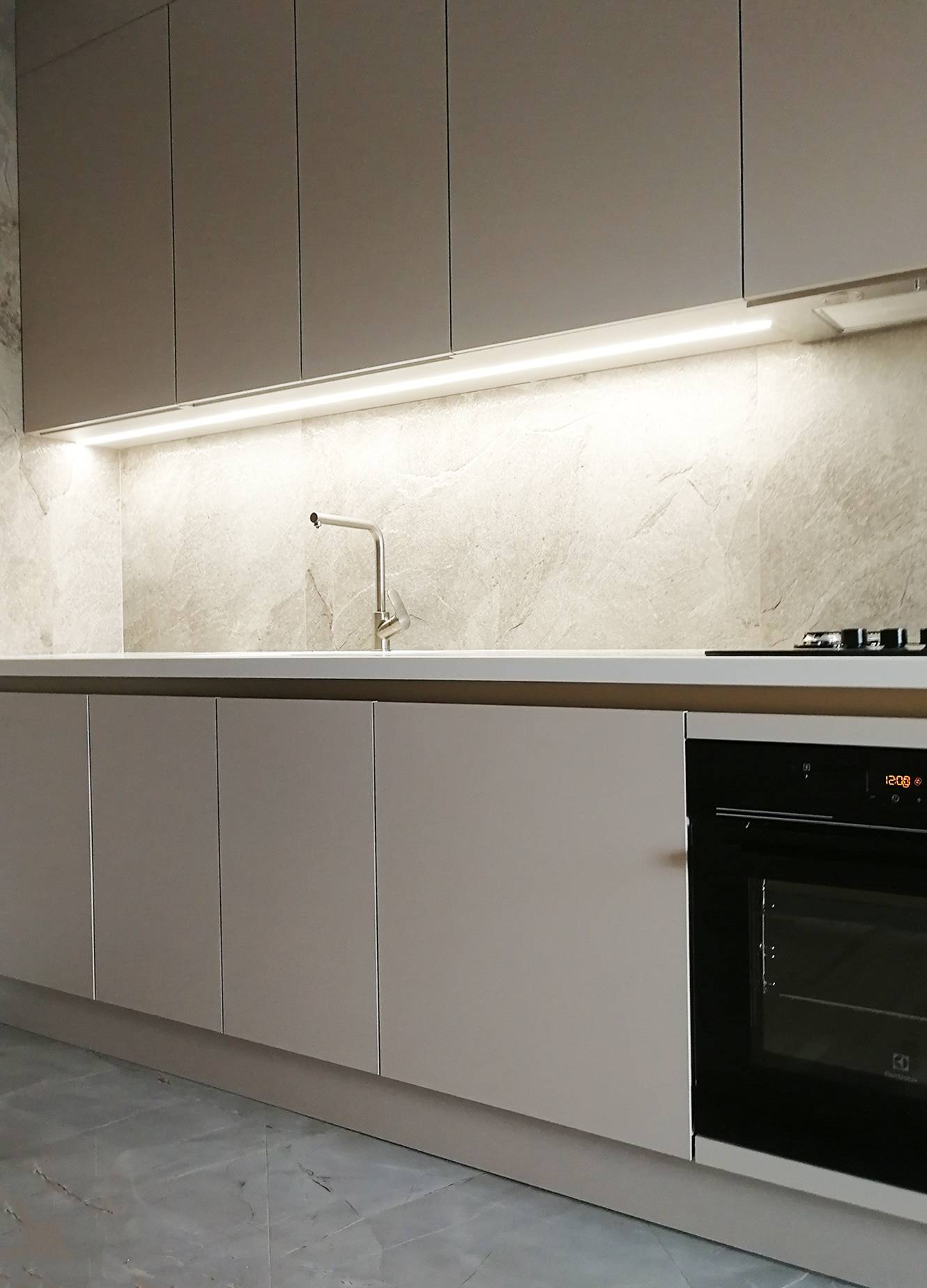 Элегантная кухня в цвете Кашемир с акцентами Шампань